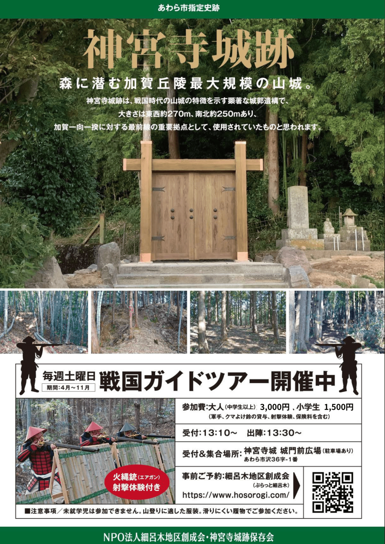 【火縄銃(エアガン)射撃体験付き】森に潜む城・神宮寺城 戦国ガイドツアー