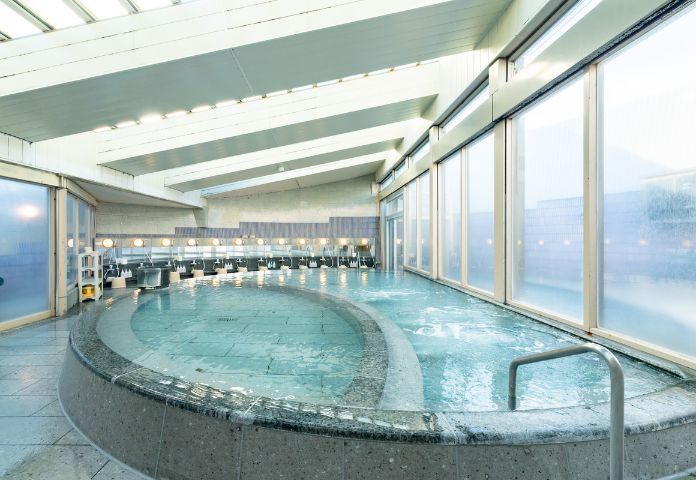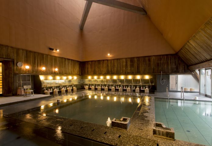 二種類の大浴場があり、「太陽殿」は開放感溢れるドーム式。「明月殿」は大きな月の円を描く浴槽の大浴場となっています。