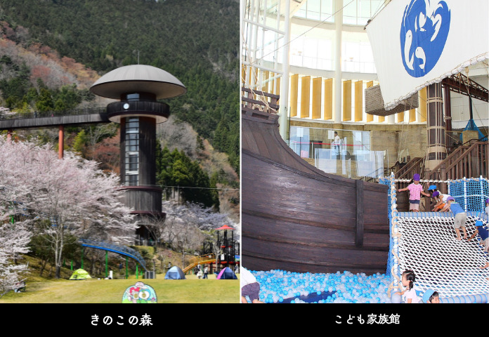 - きのこの森【屋内外】:特産品のきのこをモチーフにしたテーマパーク。広々とした芝生広場、全長460mのビッグスライダーや人工芝のソリ用ゲレンデなど遊具が充実。世界の珍しいキノコの展示や栽培を見学できたり、陶芸体験ができます。(有料)
