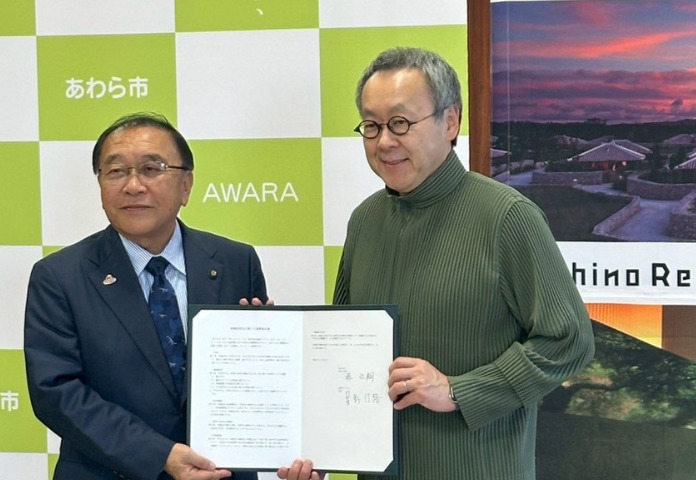 2025年11月8日あわら市で行われた星野リゾートとの「地域活性化連携協定」を締結の様子。