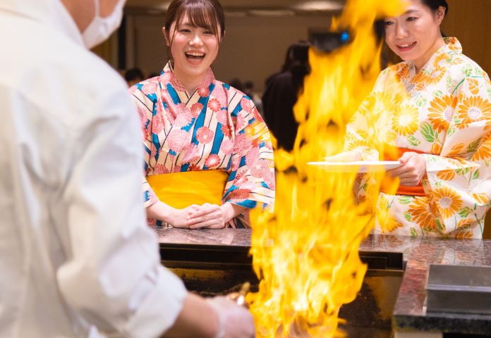 女性のお客様からの指示が特に高いグランディア芳泉。広々とした客室と美しい天空の露天風呂が特徴の旅館です。ここでは、日帰りでも利用できる入浴付きの極上ディナービュッフェプランがおすすめ。全国からこのブッフェを目当てに来られる方もいるくらいの人気です。ブッフェといってもキャビアがあったり一つ一つの器に美しく盛られた料理があったり、どれもこれもこだわりの食材で作られた豪華な品々ばかり。スイーツもまた豪華なので、大人の女性に是非行っていただきたい旅館です。入浴後は、館内でエステティックの施術を受けることも可能です。お母さんにとって、特別な日を過ごすにふさわしい豪華なひとときが待っています。