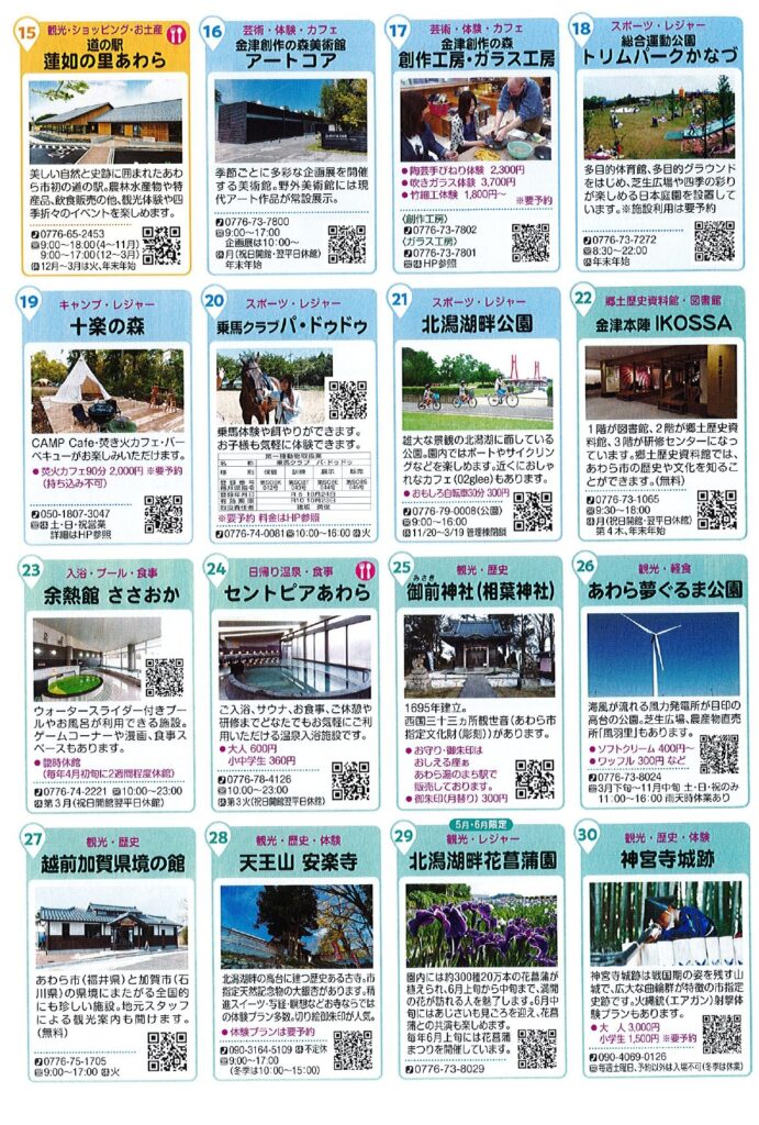 先に荷物を旅館に置いて手ぶらで観光も可能。または、日帰り温泉(セントピアあわら)を楽しんだりできるコース。