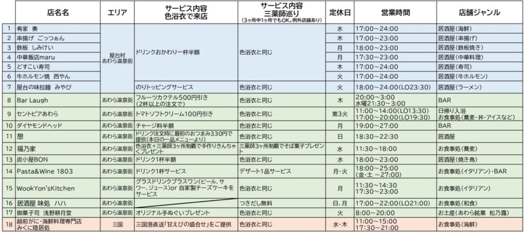 うちわ(三薬師巡り)&色浴衣サービスが受けられるお店 PDF(拡大)見る場合はこちら